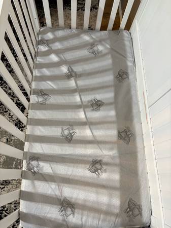 Selling our crib that has been very well cared for. This converts to a toddler bed and full bed (have to purchase the frame separate). Crib is in awesome shape with just a couple light chips along the front rail (see pics). Has a full size drawer for storage underneath as well. Mattress is like new as well with zero stains (always had a protective cover on it).